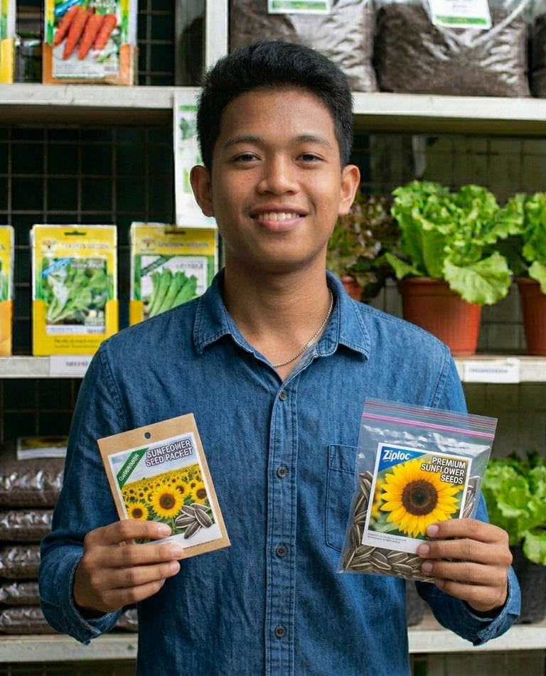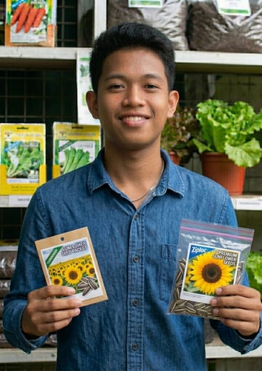 Close-up of vibrant vegetable seeds spilling from a small burlap sack onto rich soil.